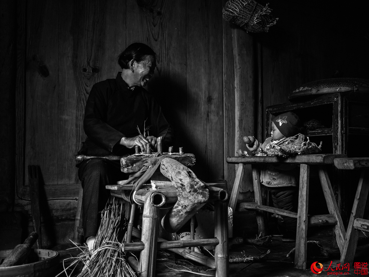 南丰的冬季是南丰农民最忙的季节,因为举世闻名的蜜桔要丰收了,壮年男女都要去桔园收桔子,留在家里的都是老人、儿童;那天,我提着相机在农村游荡,眼前突现一位奶奶正在古朴的板房内打草鞋,还带着一个刚能站立的儿童,我便走进去跟奶奶交流起来,奶奶很是热情,又是请坐又是请吃桔子,呵呵……可真暖心!
