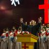 12月24日,来自世界五大洲的模特不惧严寒,在岳西县城天鹅广场户外展示内衣秀,上演美丽“冻”人精彩画面,让现场市民佩服模特的敬业精神。(储青)