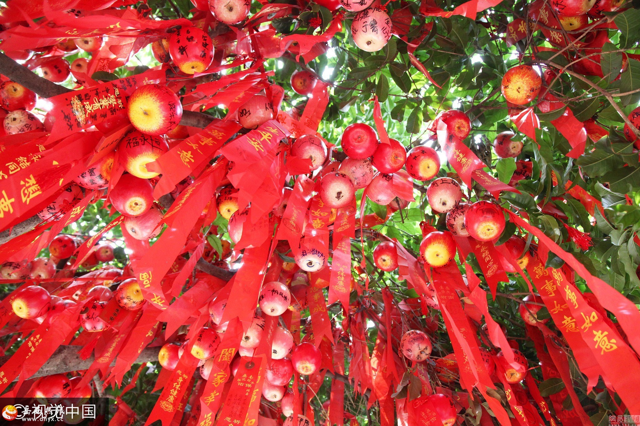 高考临近家长求孔子保佑 许愿苹果挂满树