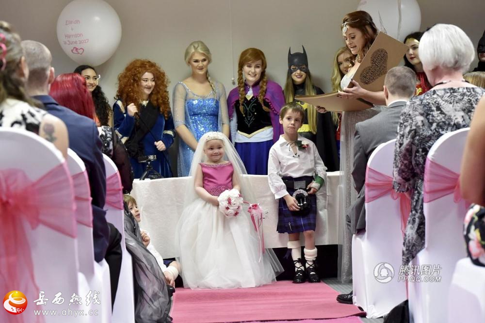 当地时间2017年6月18日,英国阿伯丁,5岁的小女孩Eileidh Paterson患成神经细胞瘤晚期,当她得知这个噩耗之后,为自己列了一个“遗愿清单”,其中最重要的一件事就是和最好的朋友,6岁的Harrison Grier举办一个梦幻的婚礼。Eileidh的父亲Gail Paterson为自己的女儿完成了这个梦想,为他们举办了一场童话式的婚礼,数百人赶往婚礼现场送上美好的祝福。
