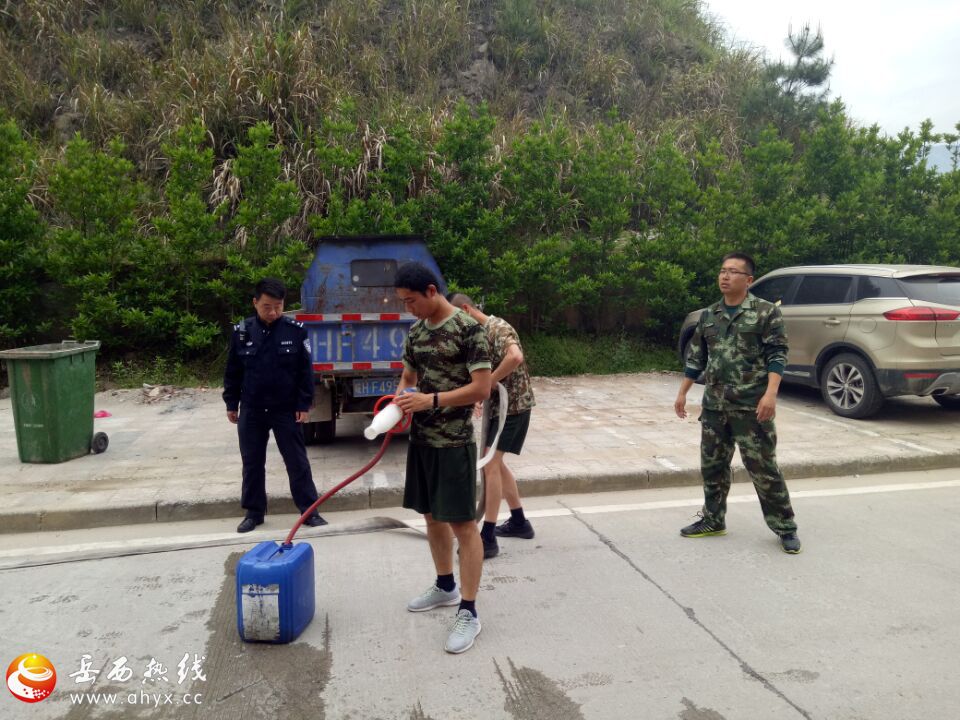 值班民警及时出警到现场,经调查了解系:汪某早晨在王非加油站加油时忘记将油箱盖盖紧就将大货车驶离,导致油箱内大量柴油溢出,在道路上形成一条大约长50米污染带,对车辆及行人的出行安全造成极大的隐患。民警迅速通过加油站老板找到车主,并利用加油站的水泵对路面进行清洗。后发现效果不明显,后请示指挥中心请求消防队支援。随后不到五分钟,消防队救援车辆赶到。出警民警立即对道路车辆进行疏导,配合消防队将污染路面清洗干净。在消防队和处警民警的配合下,不到一小时就将路面清洗干净,派出所和消防队的快速处置得到了附近商铺及老百姓的一致好评。
