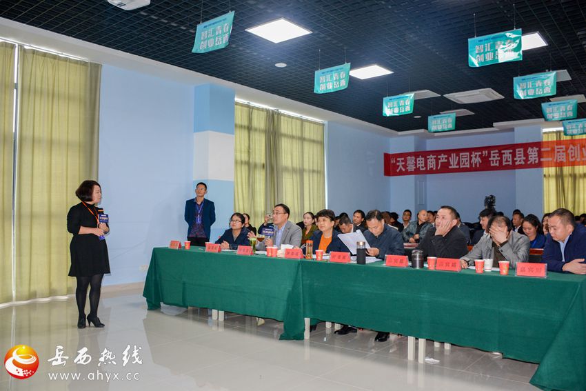 10月18日,“天馨电商产业园杯”岳西县第二届创业创新大赛复赛在安徽天馨国际电商产业园内举行。此次大赛特邀市就业局田萍、胡忠东、钱黎明3位专家担任评委,团县委、就业局、人社局相关负责人出席。