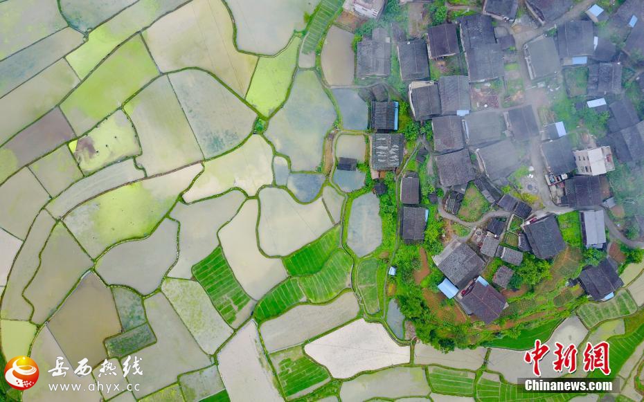 5月21日正值小满节气,俯瞰榕江县平堡侗寨外农田美不胜收。初夏时节,贵州省榕江县平堡侗寨外阡陌田园与蜿蜒的河流、古色古香的青瓦吊脚楼侗寨构成美丽的夏日图景,从空中俯瞰农田色彩斑斓、纵横有致,宛如天然调色板。 中新社记者 贺俊怡 摄