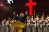 12月24日,来自世界五大洲的模特不惧严寒,在岳西县城天鹅广场户外展示内衣秀,上演美丽“冻”人精彩画面,让现场市民佩服模特的敬业精神。(储青)