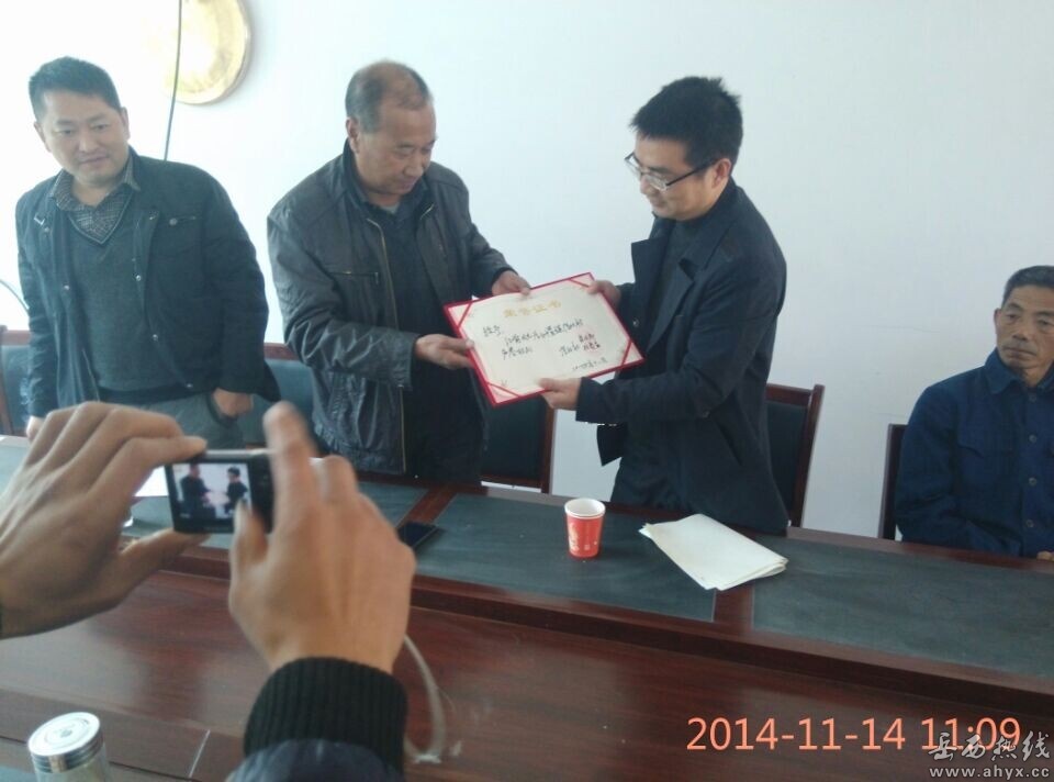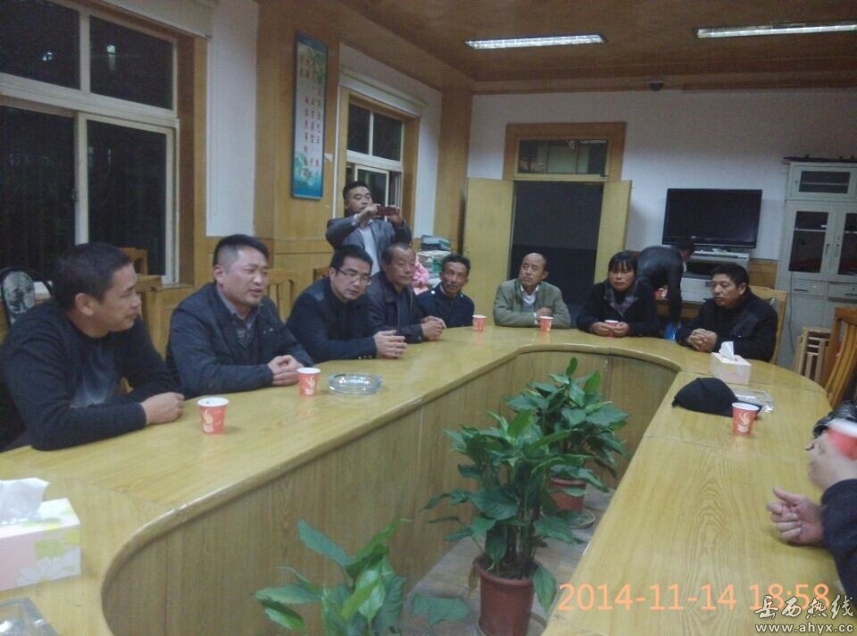 2014年11月14日,岳西林业局副局长查道恒、人事股长刘召林、森林公安局教导员余中民前往白帽镇深村村迎接挂职书记汪前回单位。